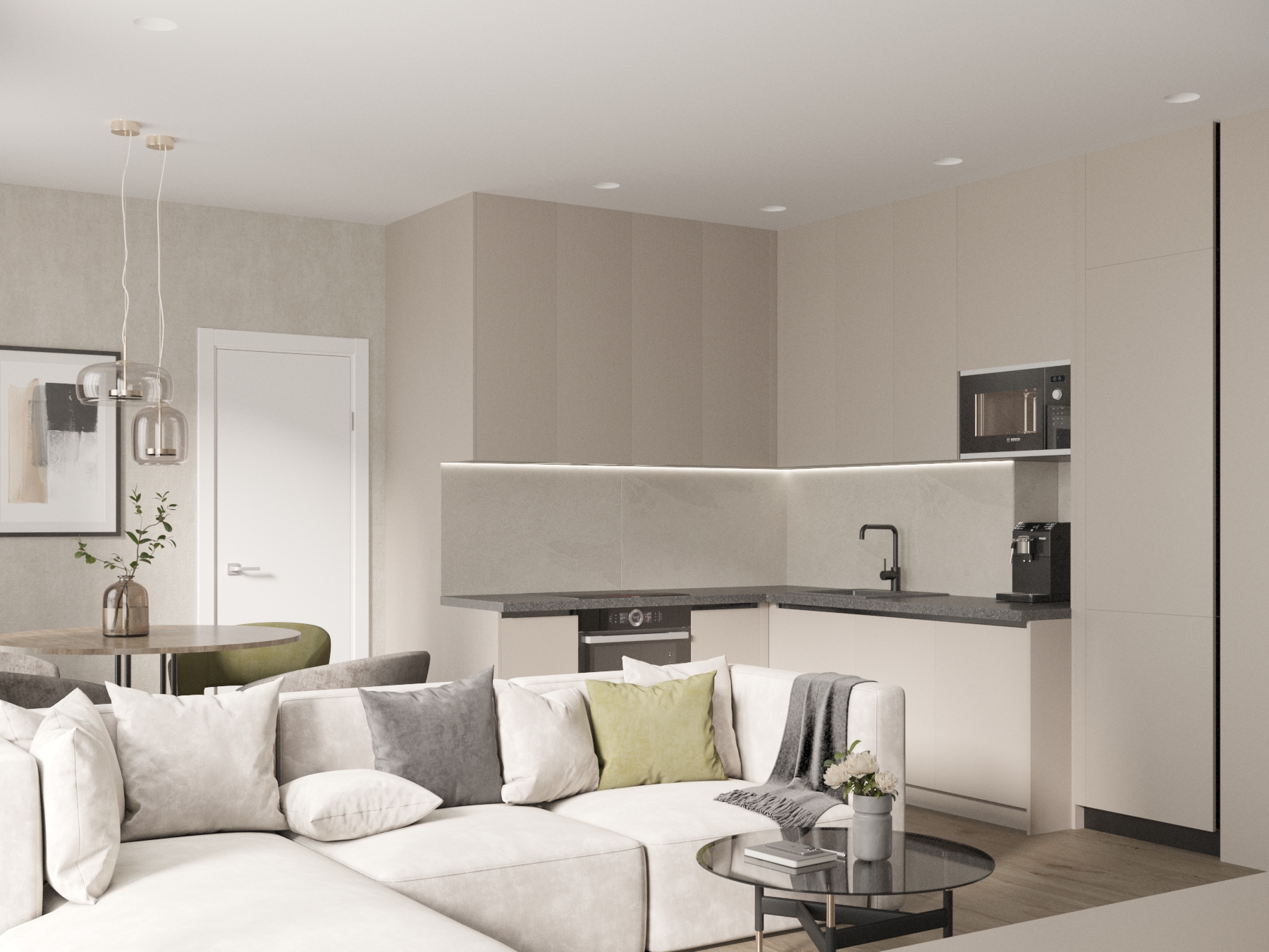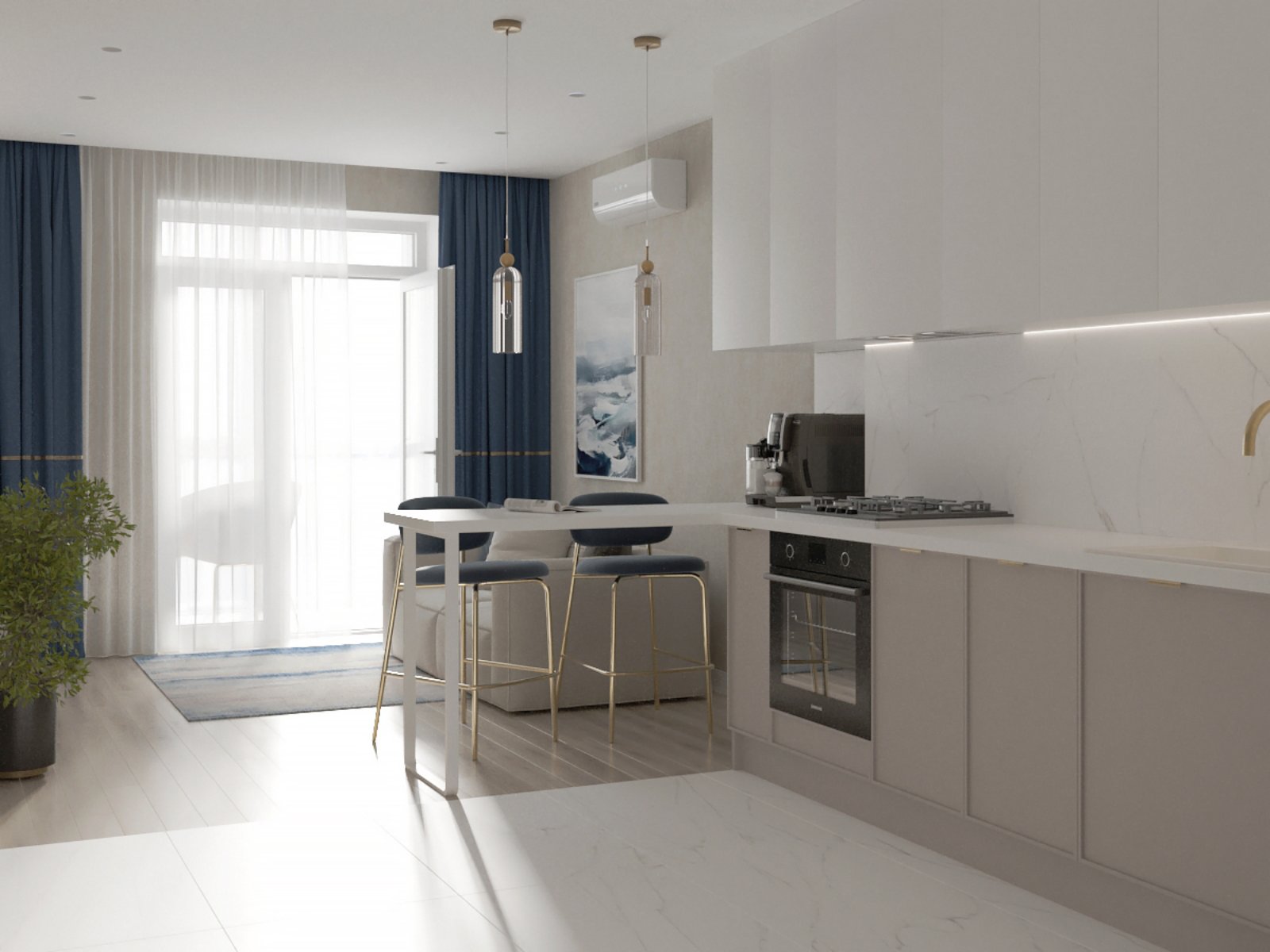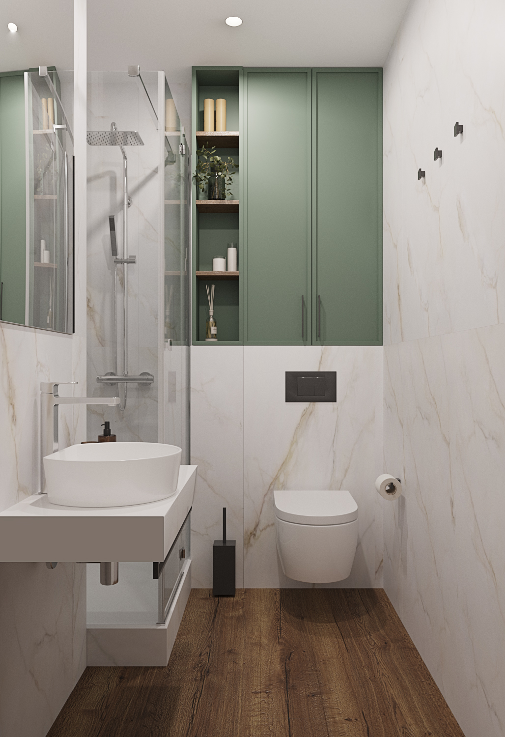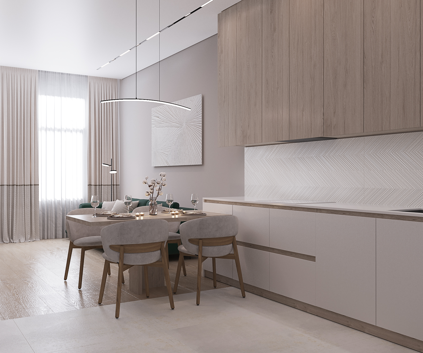 Использованные материалы: ЛДСП EGGER, крашеный фрезерованный МДФ, фурнитура Blum
