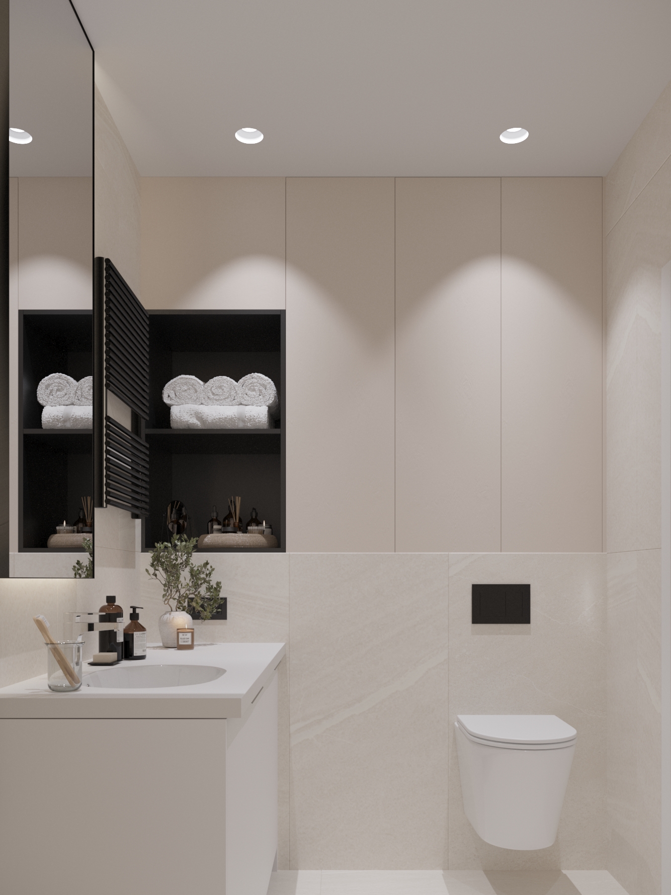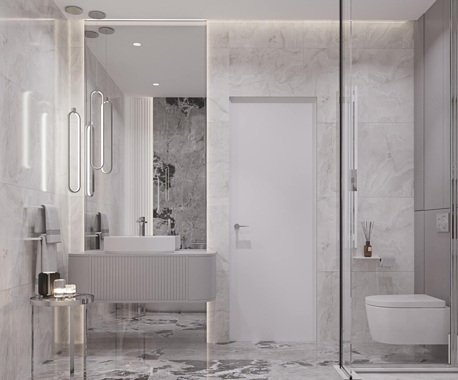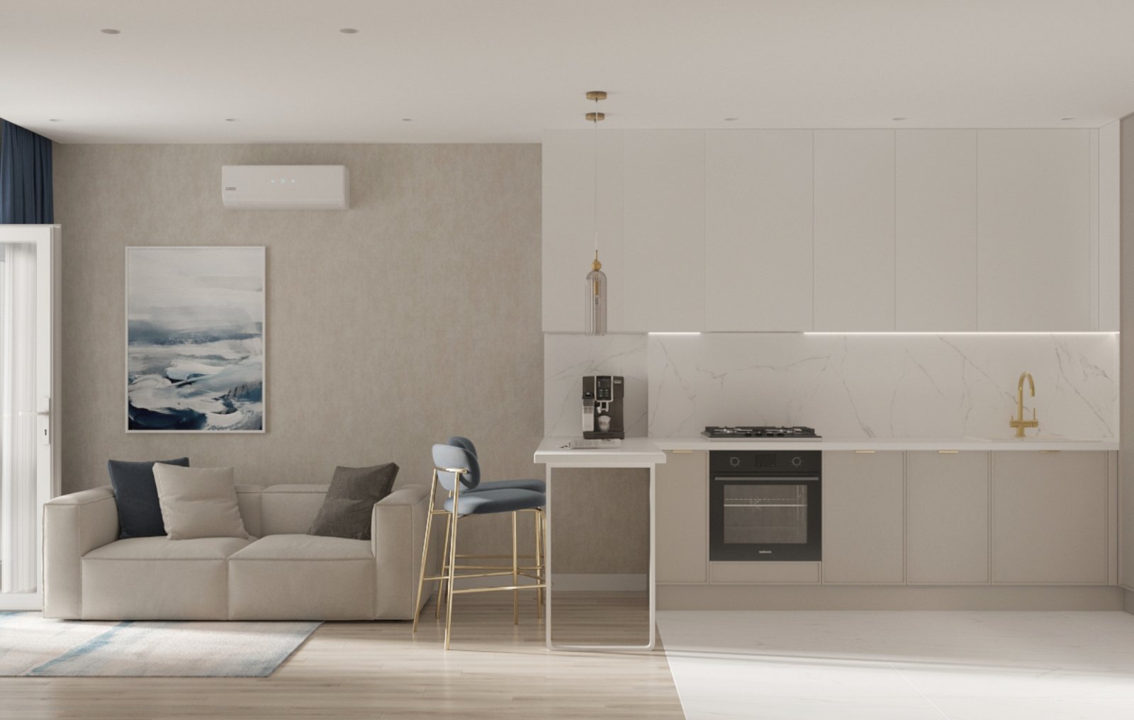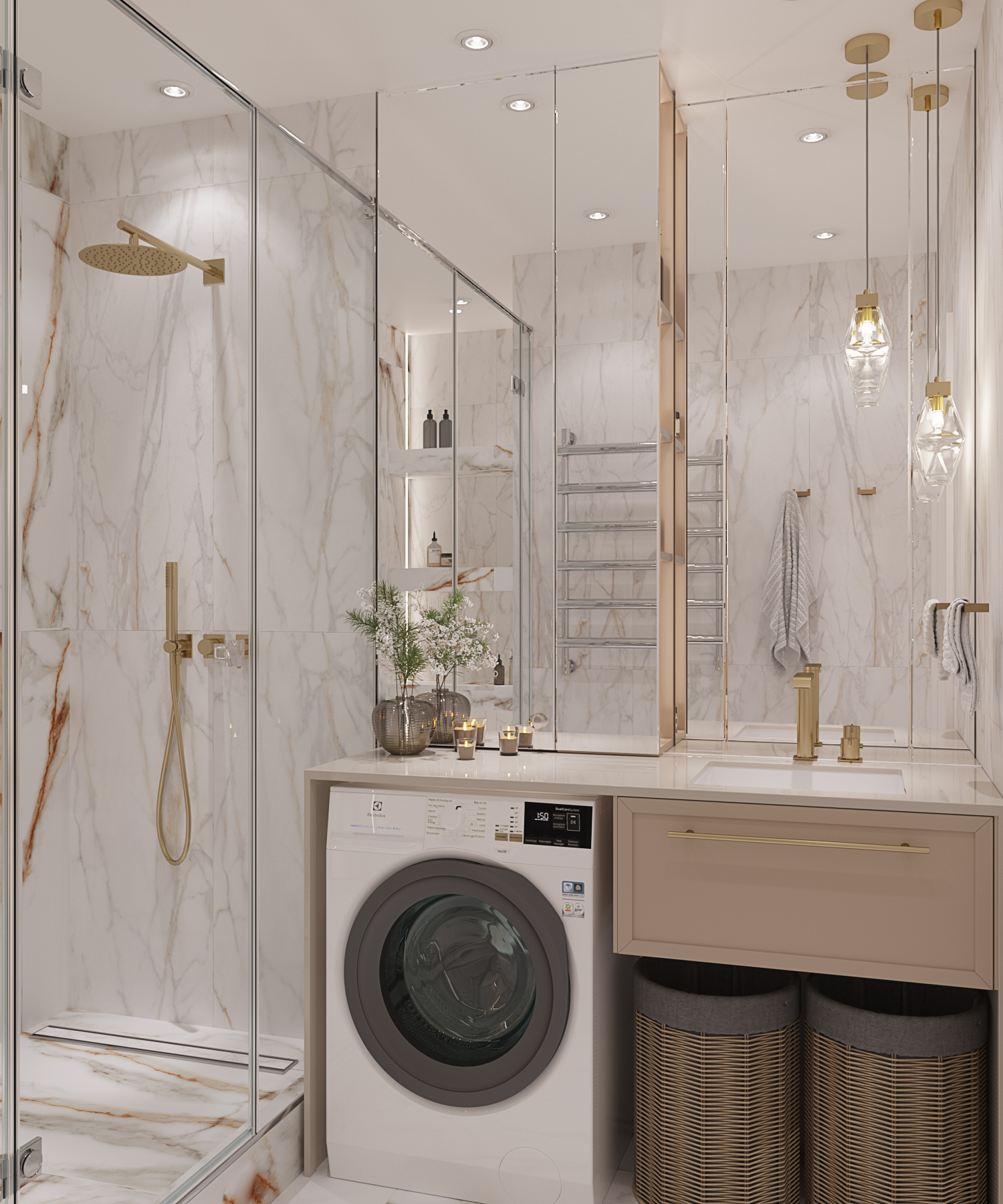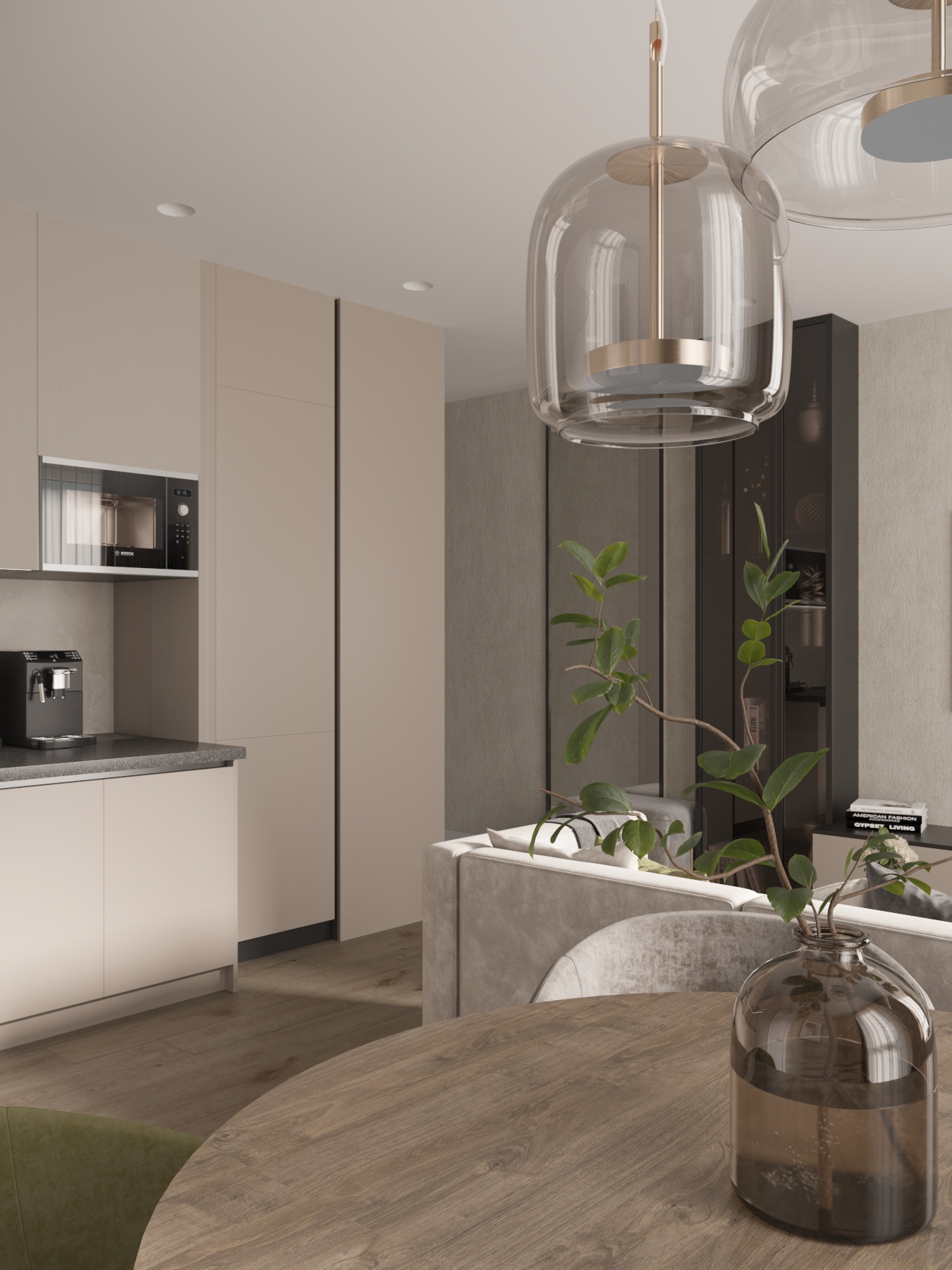 Использованные материалы: ЛДСП EGGER, крашеный фрезерованный МДФ, фурнитура Blum
